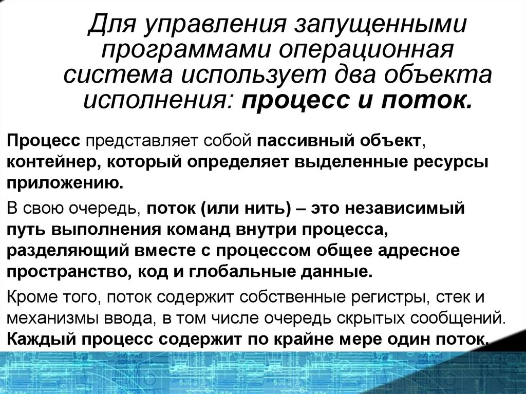 исполнения: процесс и поток.