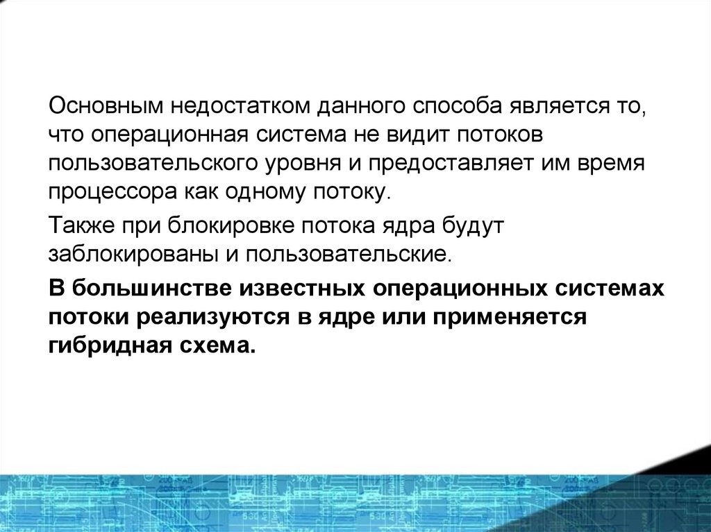Основным недостатком данного способа является то,что операционная система не видит потоков