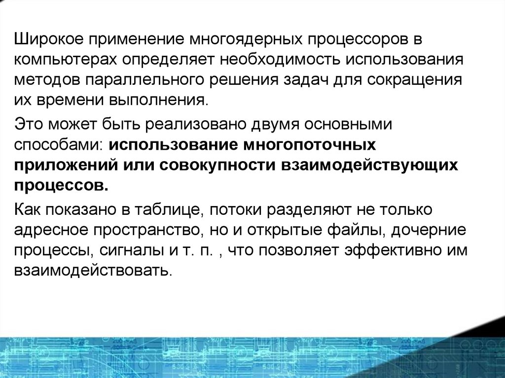 Широкое применение многоядерных процессоров вкомпьютерах определяет необходимость использования
