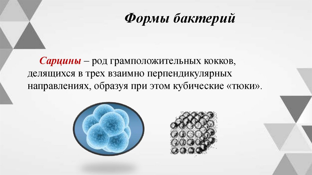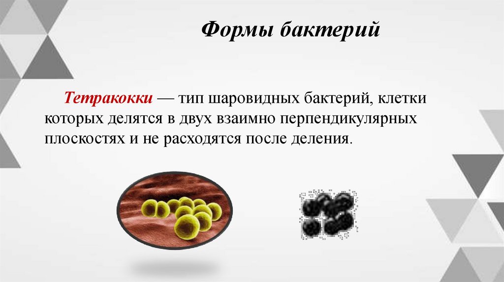 Формы бактерийТетракокки — тип шаровидных бактерий, клетки