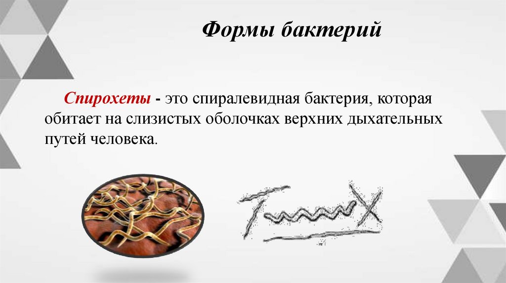 Формы бактерийСпирохеты - это спиралевидная бактерия, которая