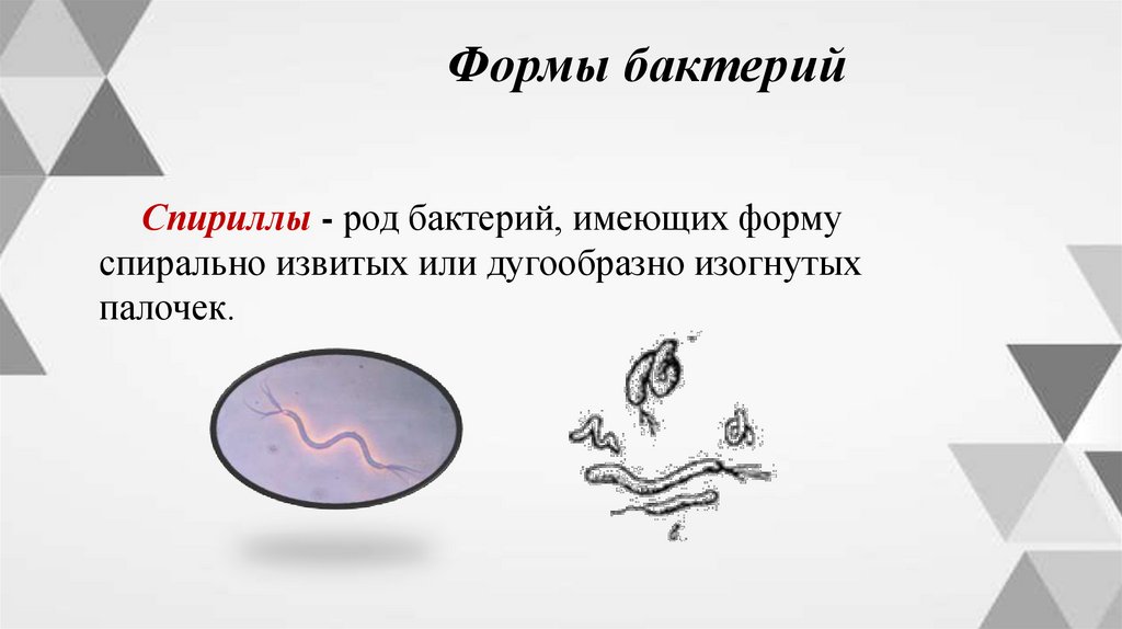 Формы бактерийСпириллы - род бактерий, имеющих форму