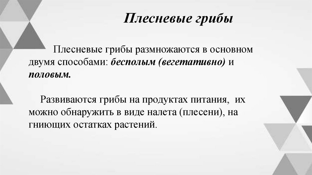 Плесневые грибыПлесневые грибы (эукариоты) – это
