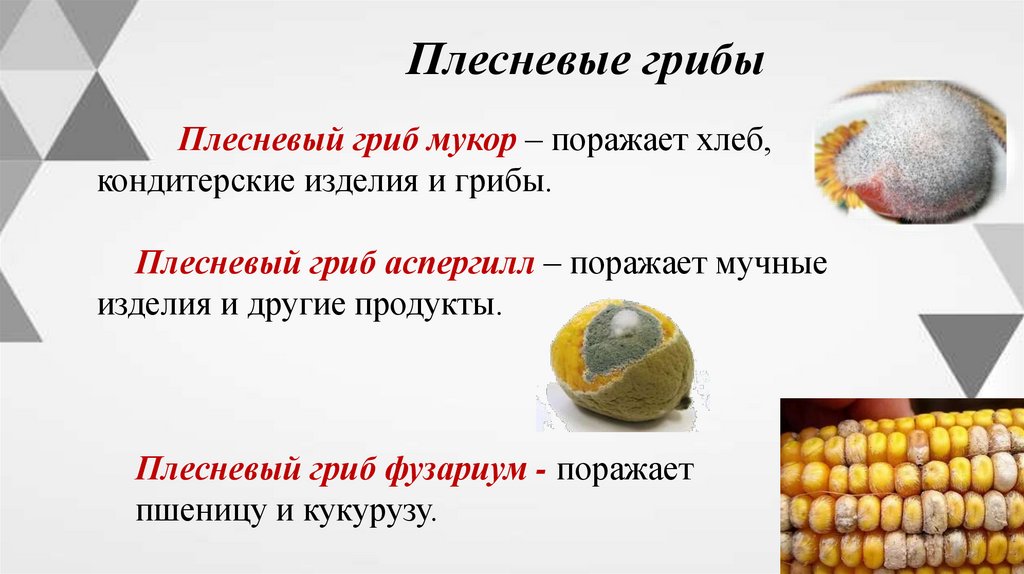 Плесневые грибыПлесневый гриб мукор – поражает хлеб,