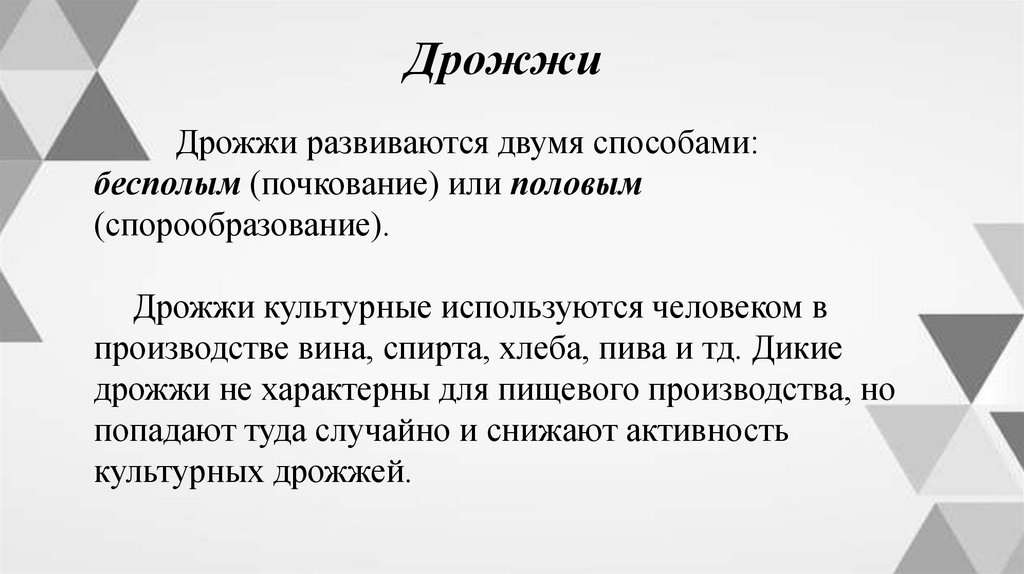 производстве вина, спирта, хлеба, пива и тд. Дикие
