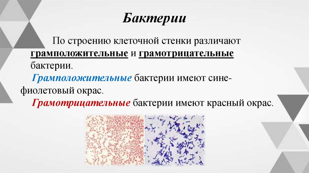 Грамположительные бактерии имеют синефиолетовый окрас.
