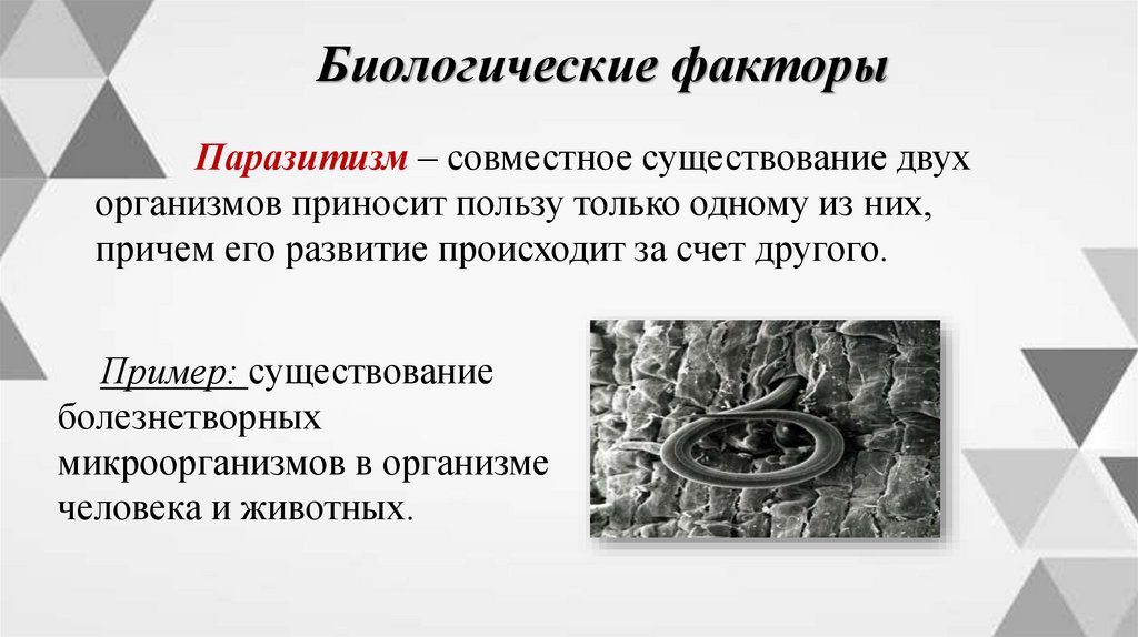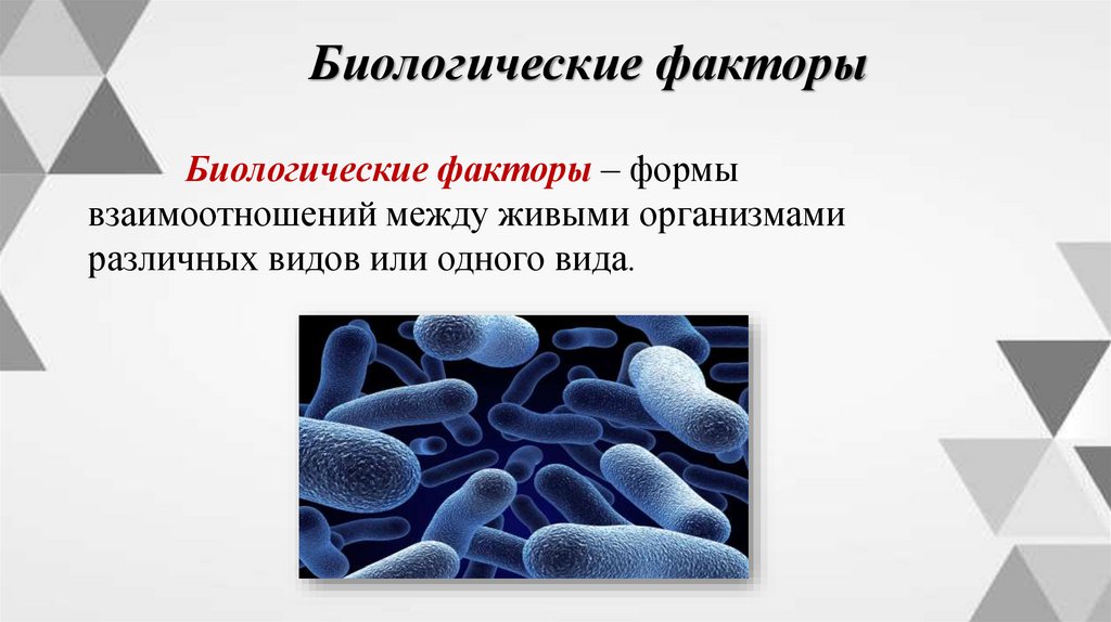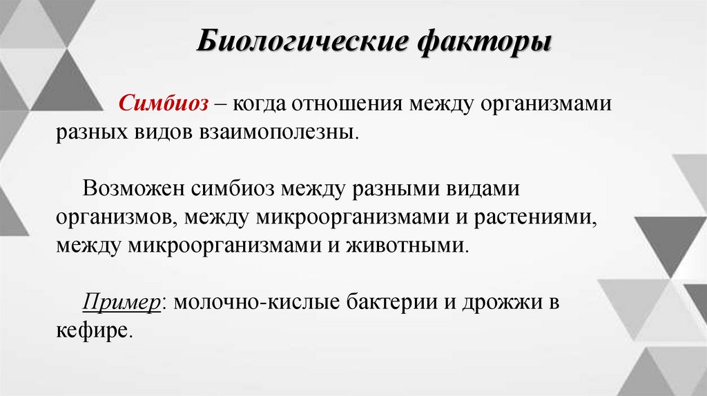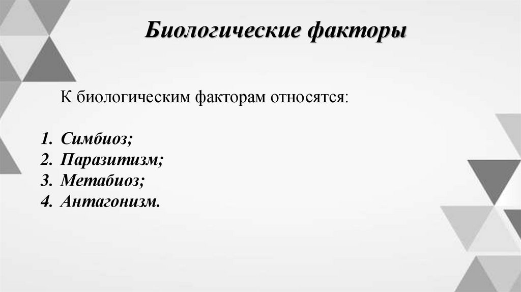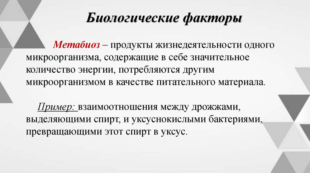 Биологические факторыМетабиоз – продукты жизнедеятельности одного