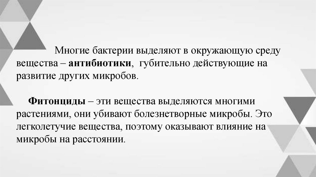 Многие бактерии выделяют в окружающую средувещества – антибиотики, губительно действующие на