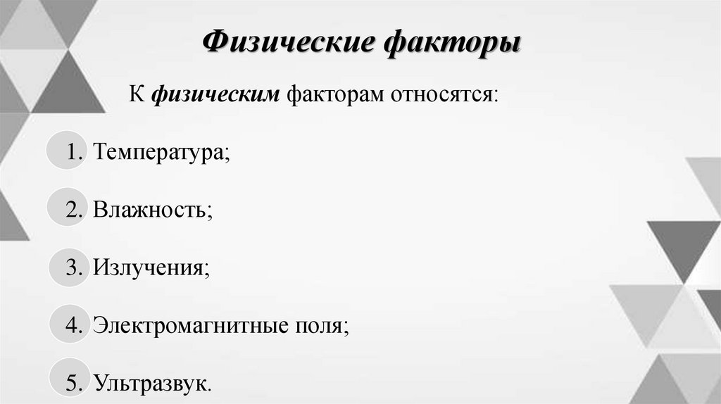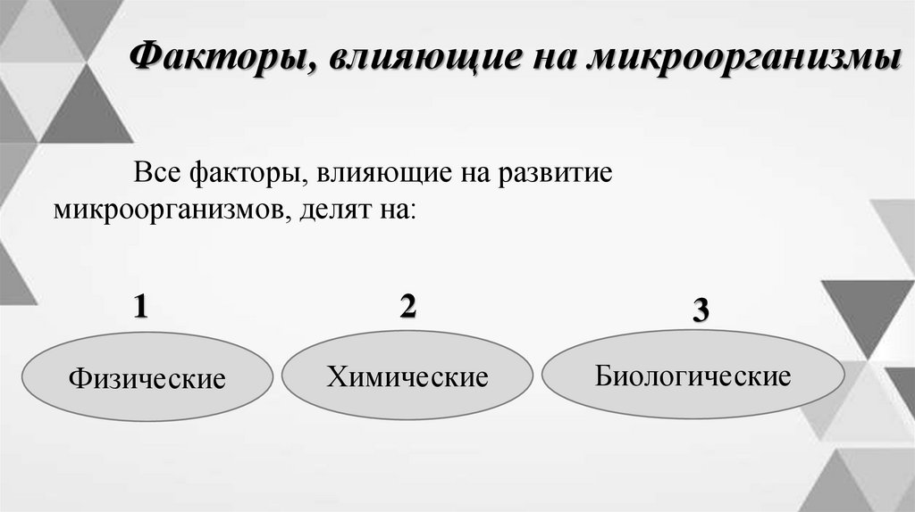 Факторы, влияющие на микроорганизмыВсе факторы, влияющие на развитие