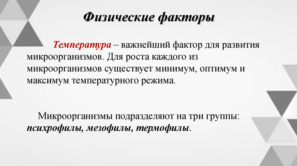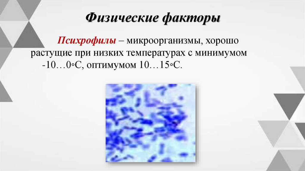 Физические факторыПсихрофилы – микроорганизмы, хорошо
