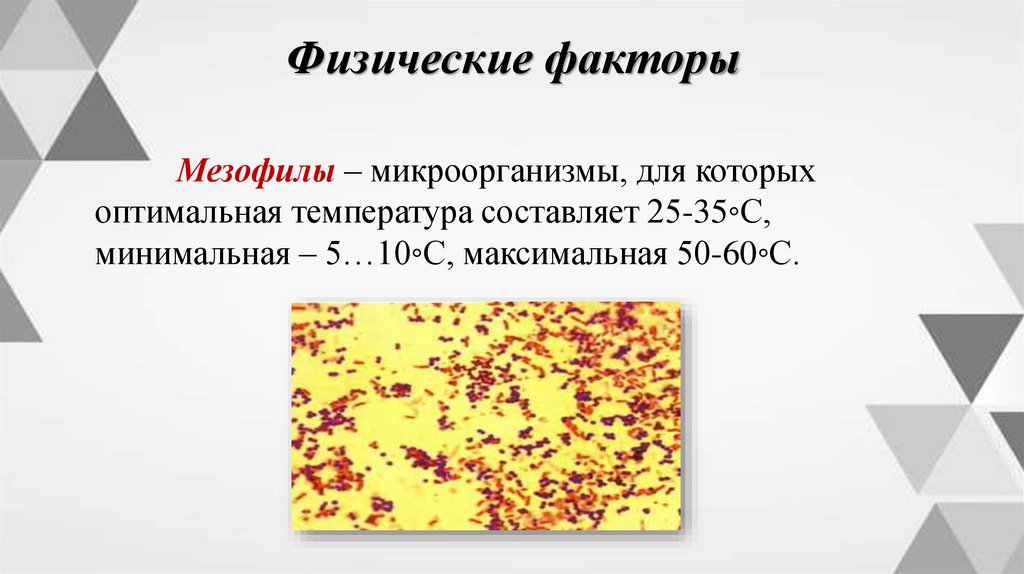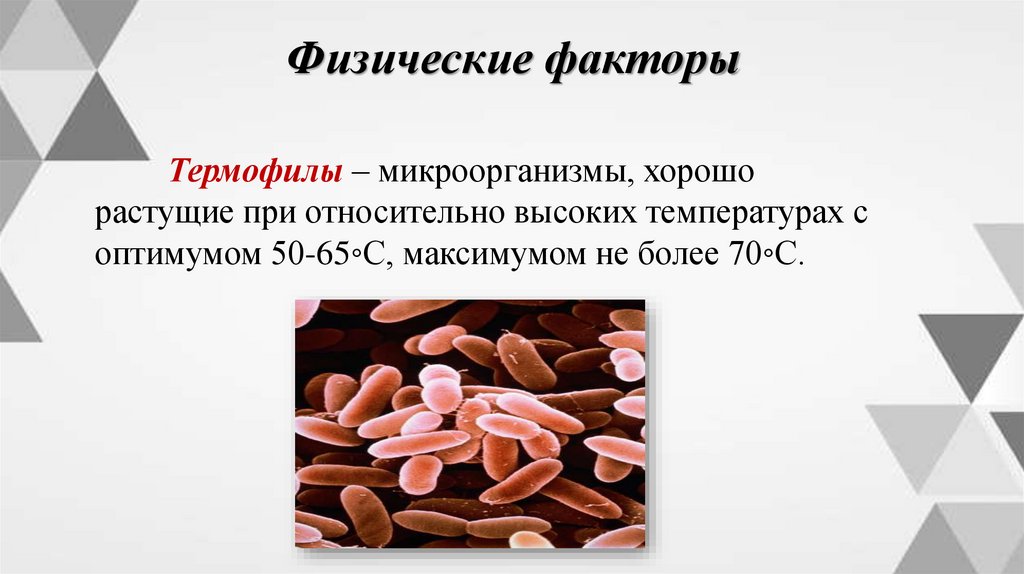 Физические факторыТермофилы – микроорганизмы, хорошо