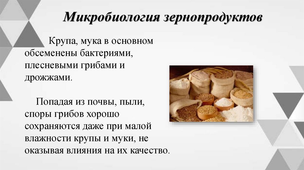 Микробиология зернопродуктовКрупа, мука в основном