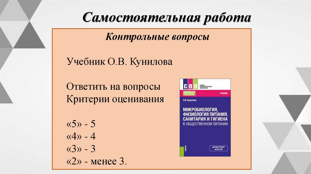 Самостоятельная работаКонтрольные вопросы