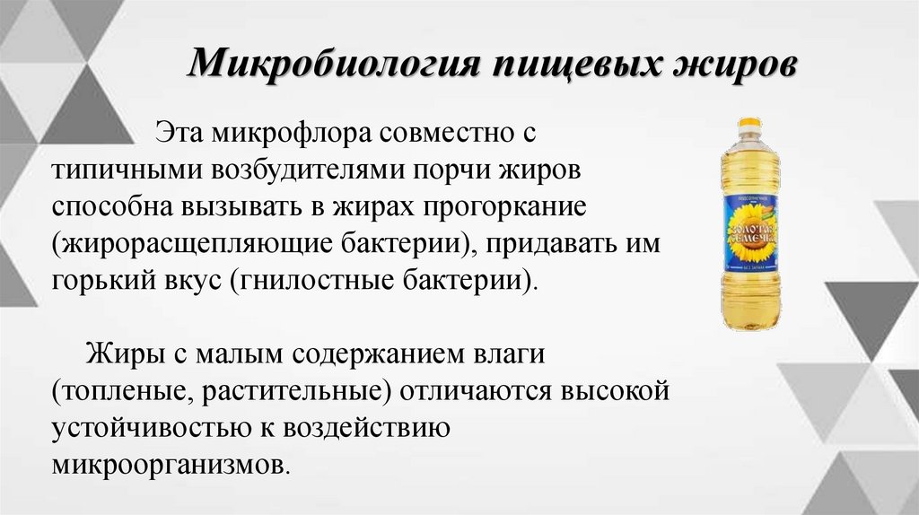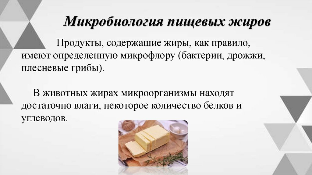 Микробиология пищевых жировПродукты, содержащие жиры, как правило,
