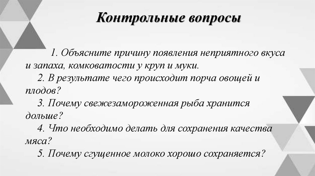 Контрольные вопросы1. Объясните причину появления неприятного вкуса