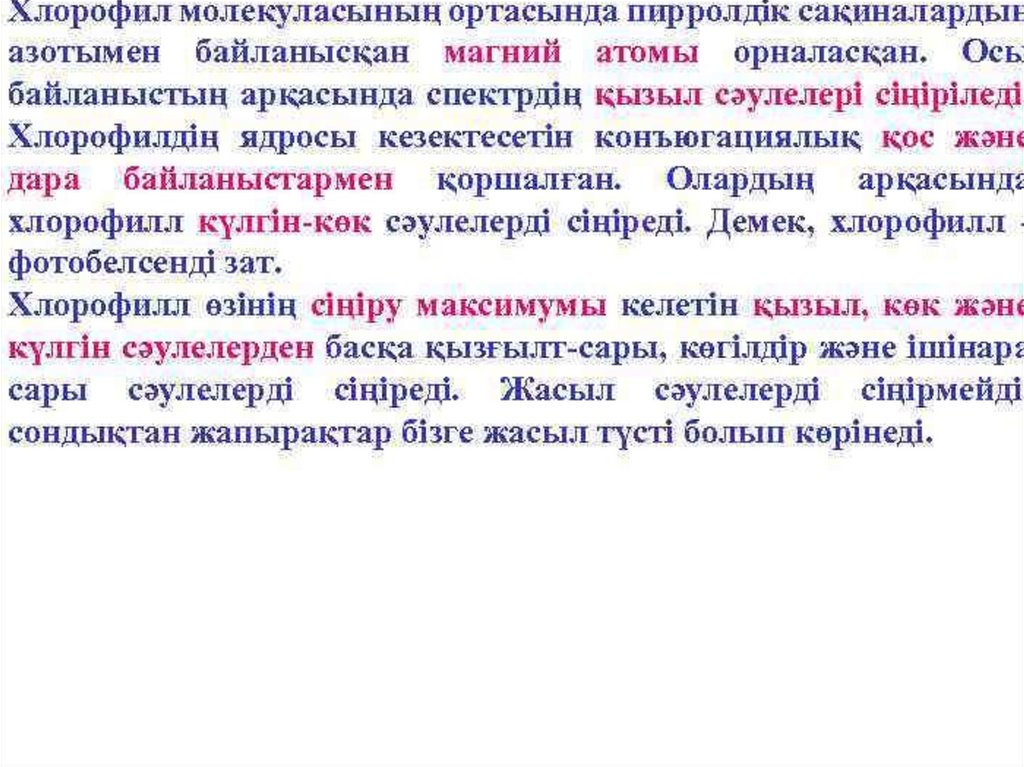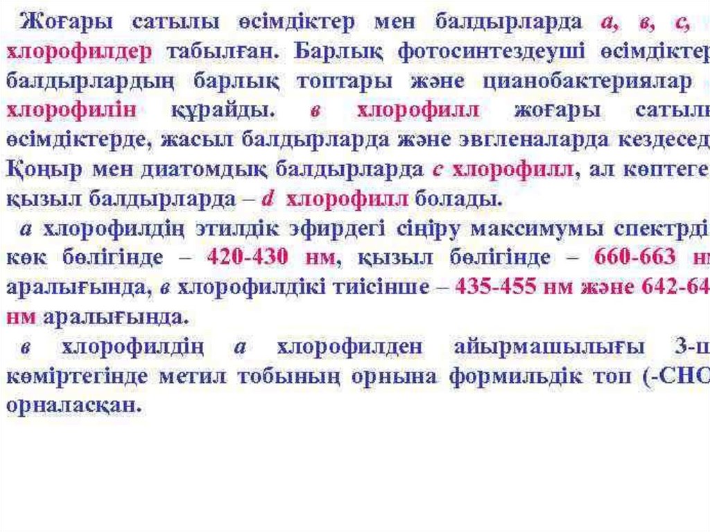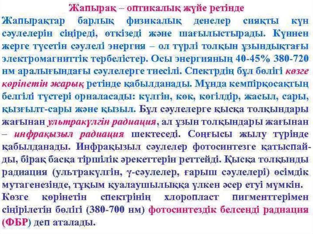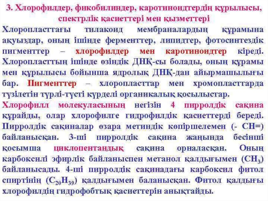 * Фотосинтез. Жапырақ пигменттері. Хлорофилдер.