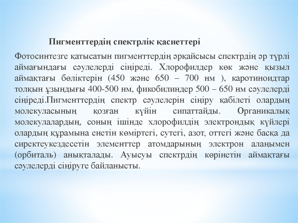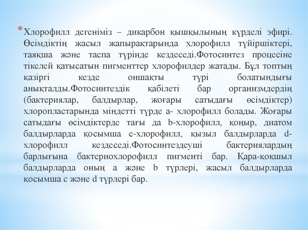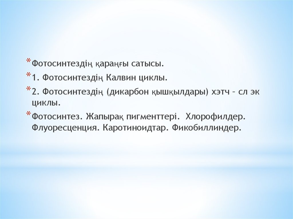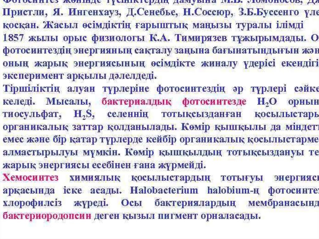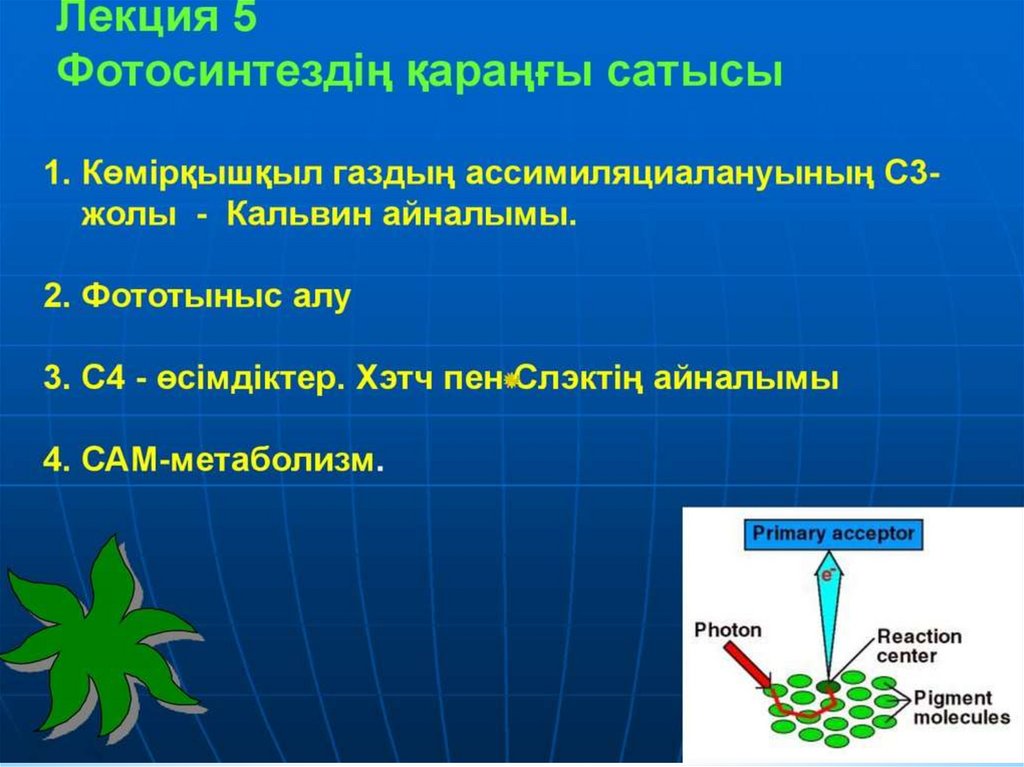 * Фотосинтез. Жапырақ пигменттері. Хлорофилдер.
