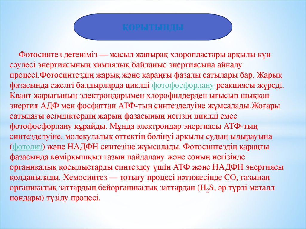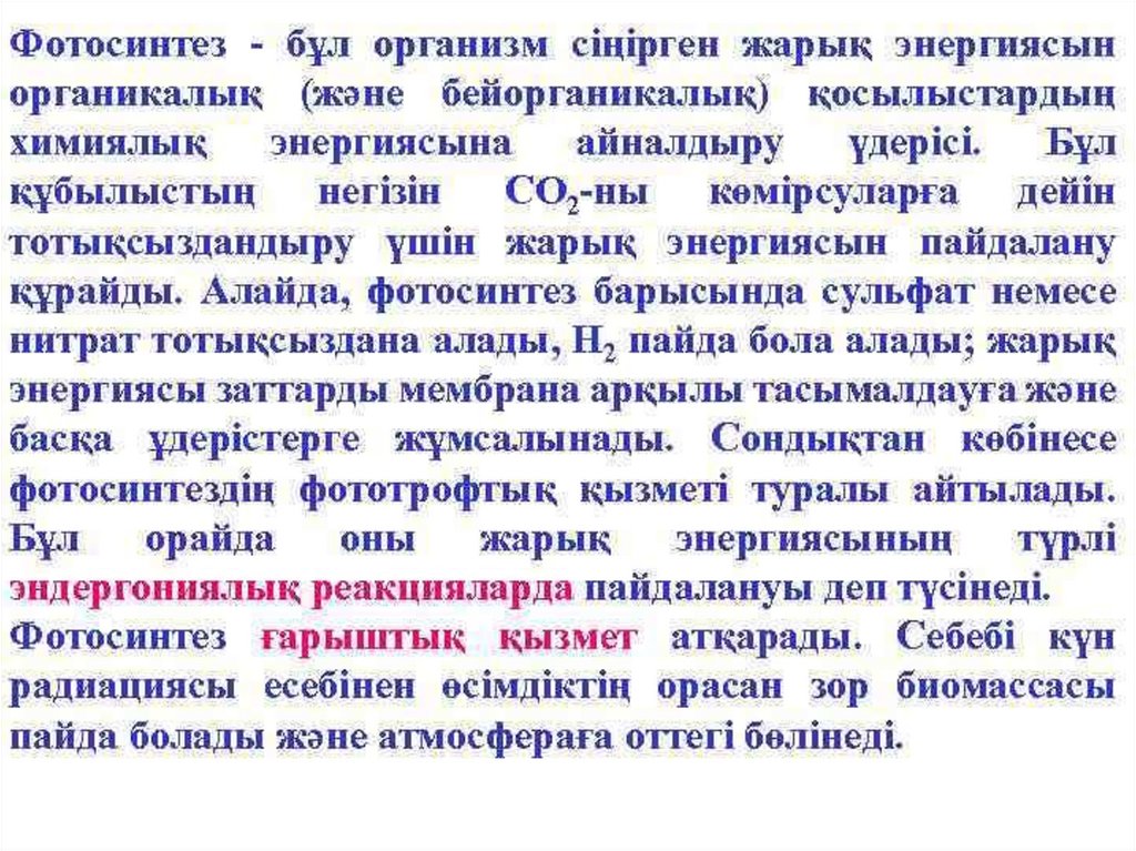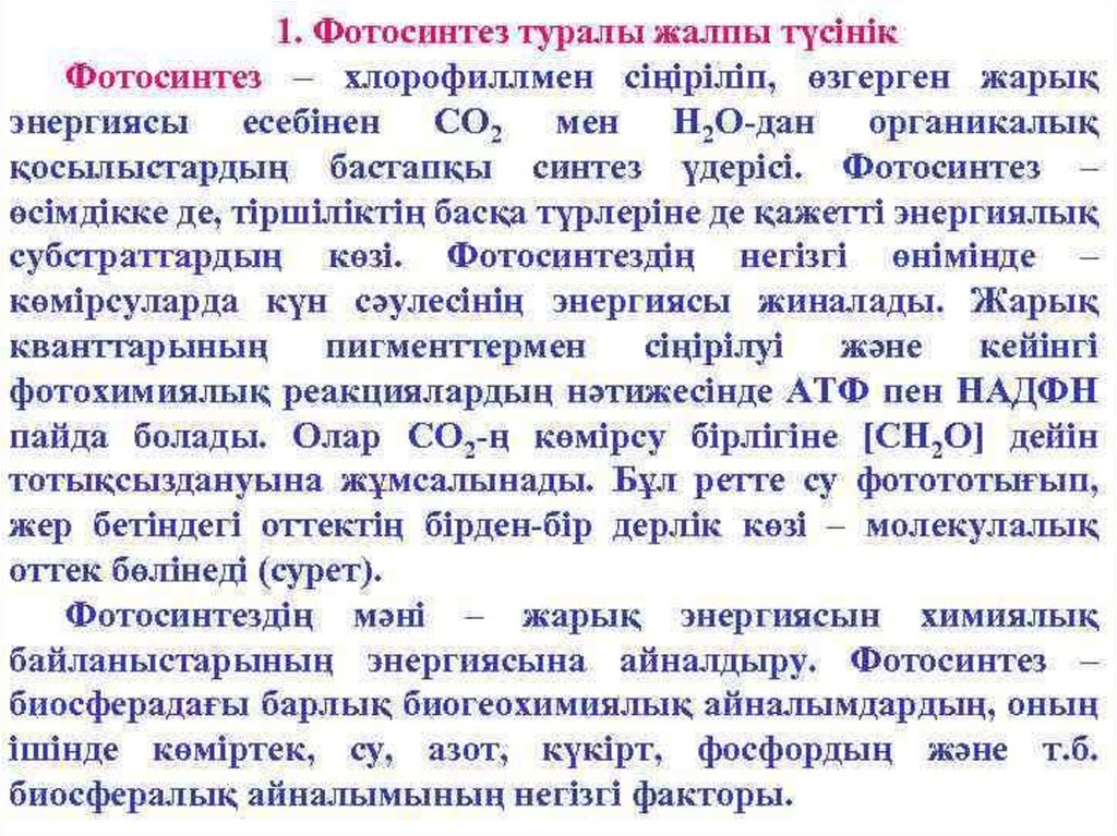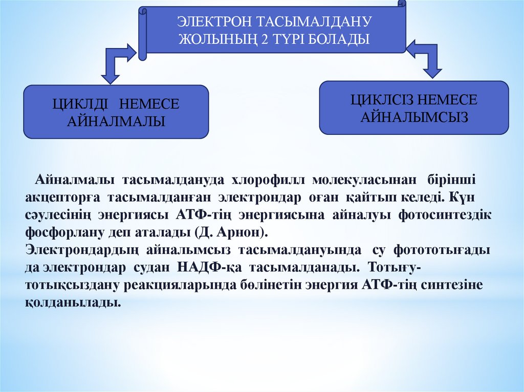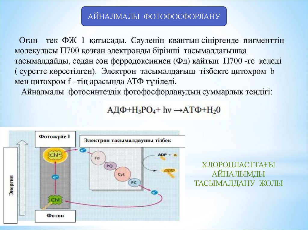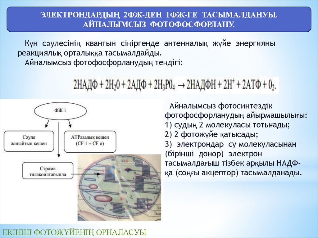 ЭЛЕКТРОНДАРДЫҢ 2ФЖ-ДЕН 1ФЖ-ГЕ ТАСЫМАЛДАНУЫ.АЙНАЛЫМСЫЗ ФОТОФОСФОРЛАНУ.