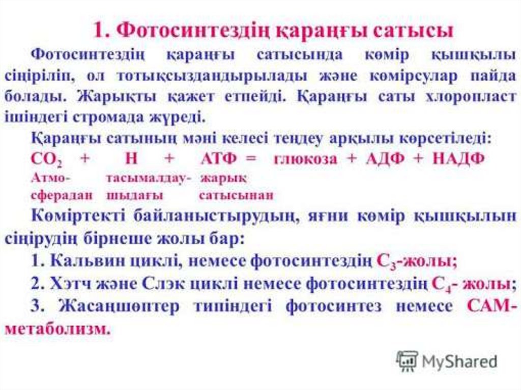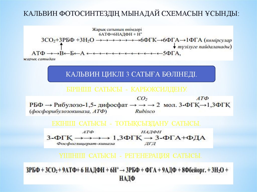 ФОТОСИНТЕЗДІҢ ҚАРАҢҒЫ САТЫСЫКальвин циклі. Фотосинтездің қараңғы