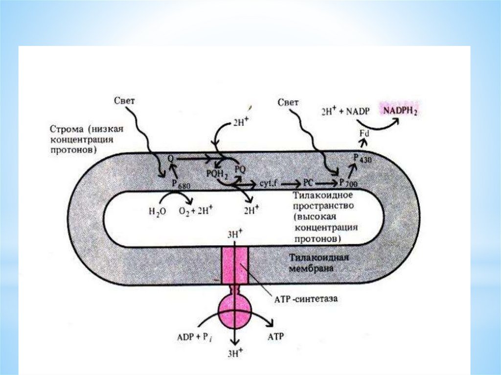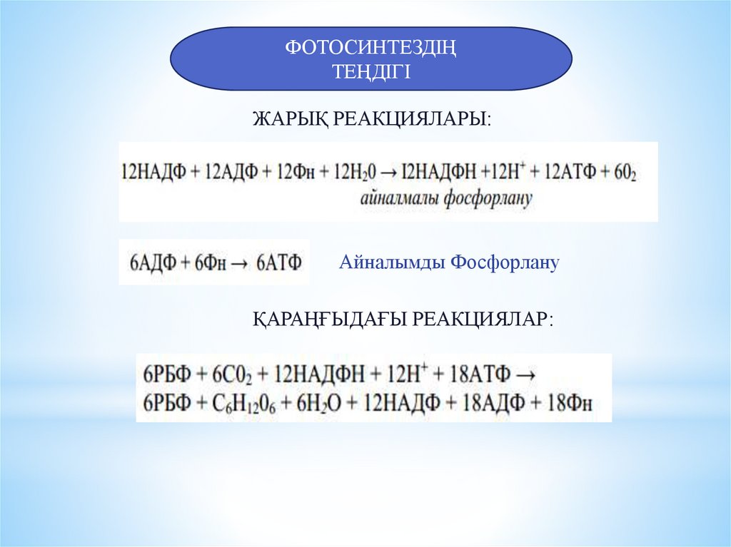 да электрондар судан НАДФ-қа тасымалданады. Тотығутотықсыздану реакцияларында бөлінетін энергия АТФ-тің синтезіне