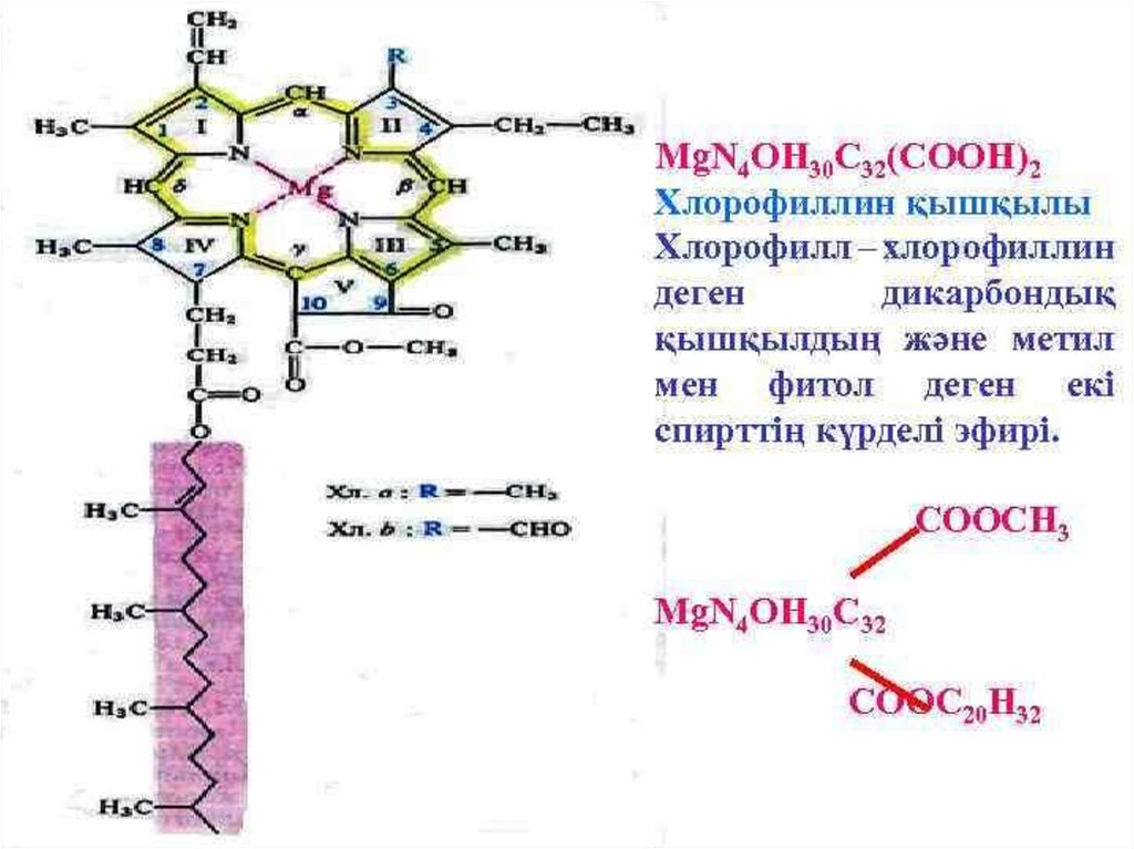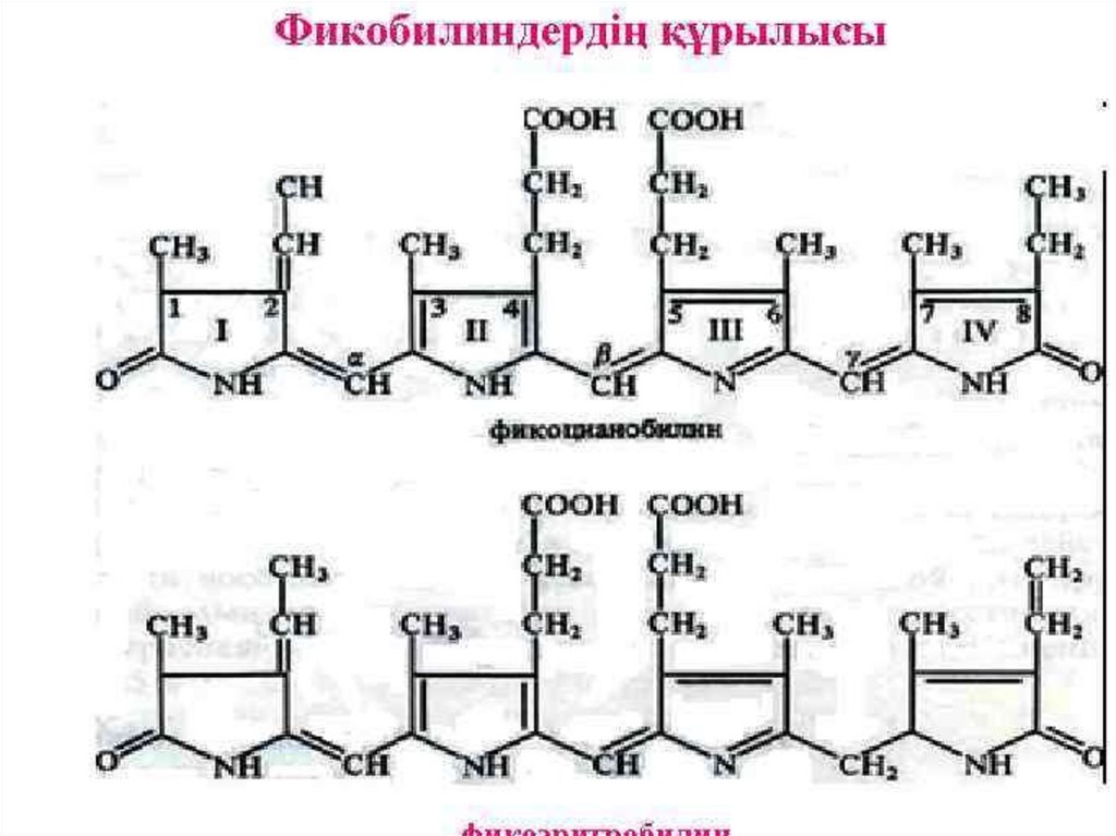 Хлорофилдің химиялық құрамына ұқсас. Фикобилииндердің хлорофилден