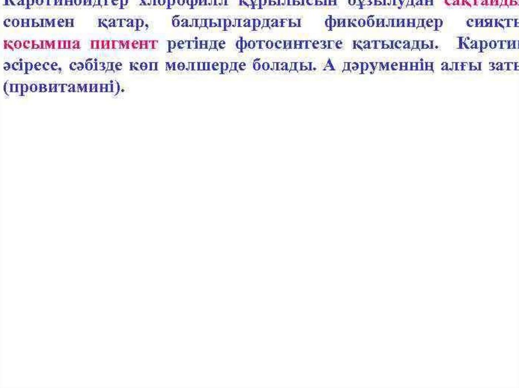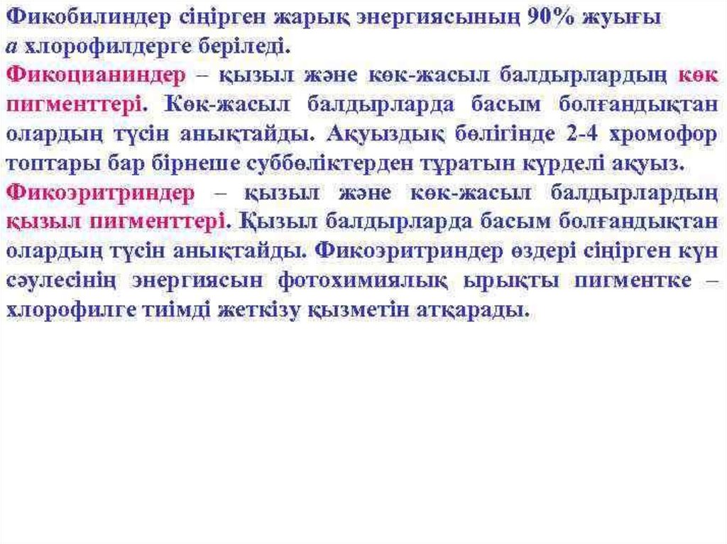 пигменттері де кездеседі. Көк-жасыл балдырлардың негізгі пигменті –