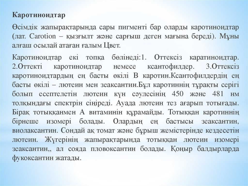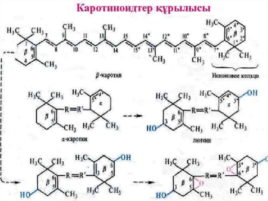 Каротиноидтар екі топқа бөлінеді:1. Оттексіз каратиноидтар.
