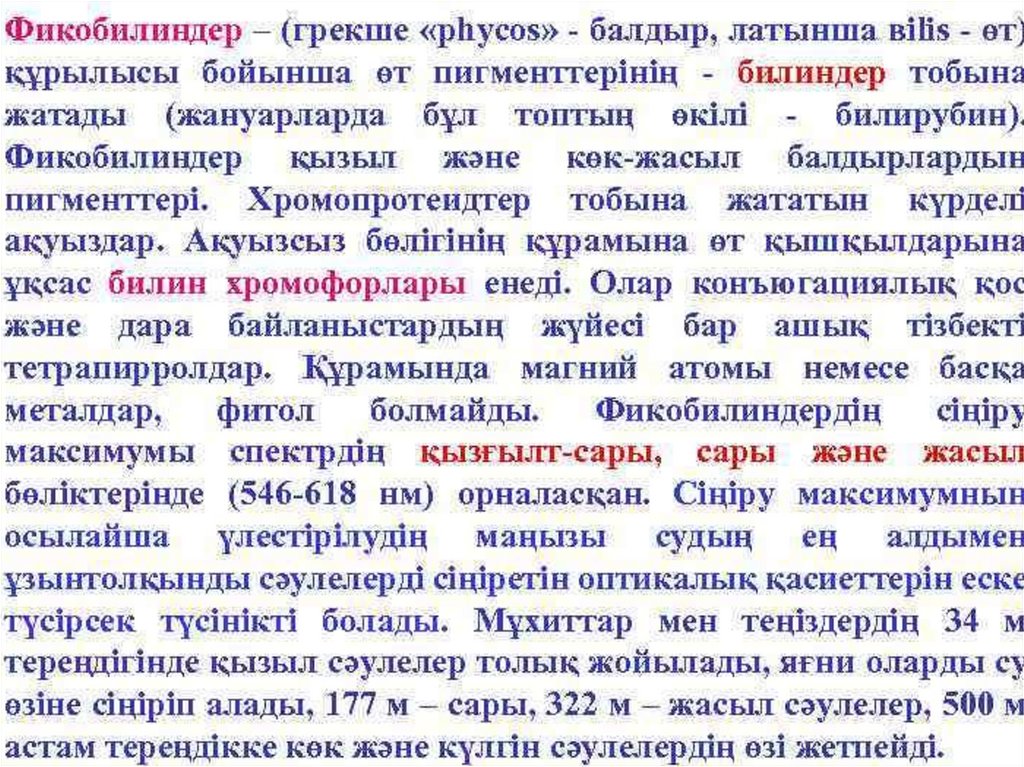деген мағына береді. Бұл суда өсетін балдырларда кездеседі. Фикобилиндер