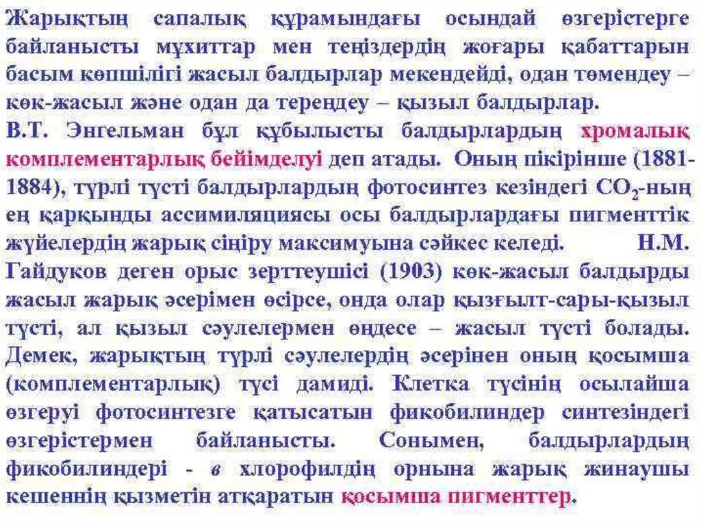 пигментіне ұқсас.Балдырлардың фотосинтездеуші құрлымындағы