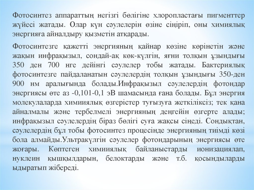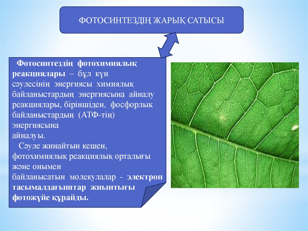 ФОТОСИНТЕЗДІҢ ЖАРЫҚ САТЫСЫФотосинтездің фотохимиялық