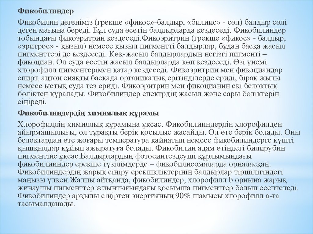 немесе ыстық суда тез ериді. Фикоэритрин мен фикоцианин екі белоктық