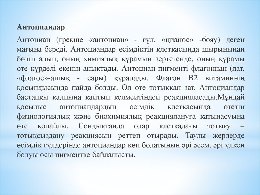 мағына береді. Антоциандар өсімдіктің клеткасында шырынынан