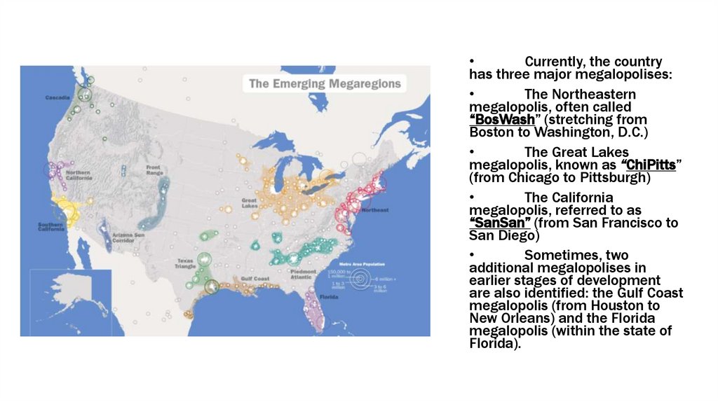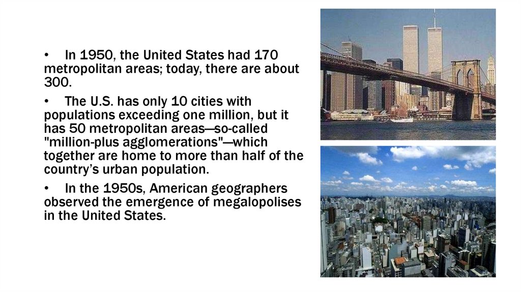 • In 1950, the United States had 170metropolitan areas; today, there are about