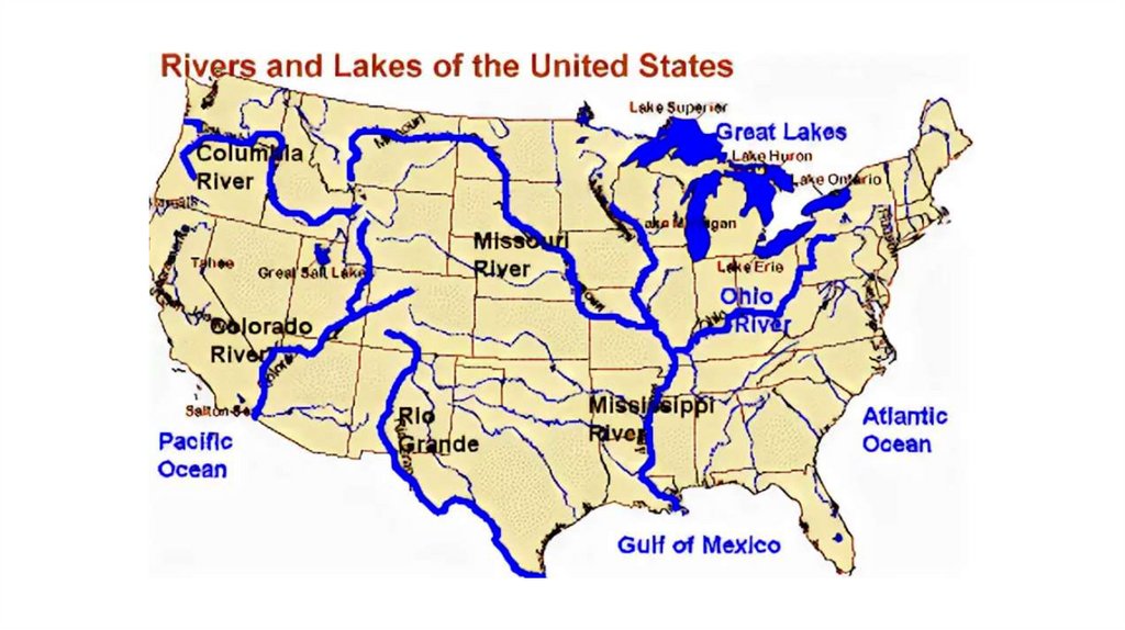 • Rivers in the United States drain into the basins of three oceans: the Pacific,the Atlantic, and the Arctic.