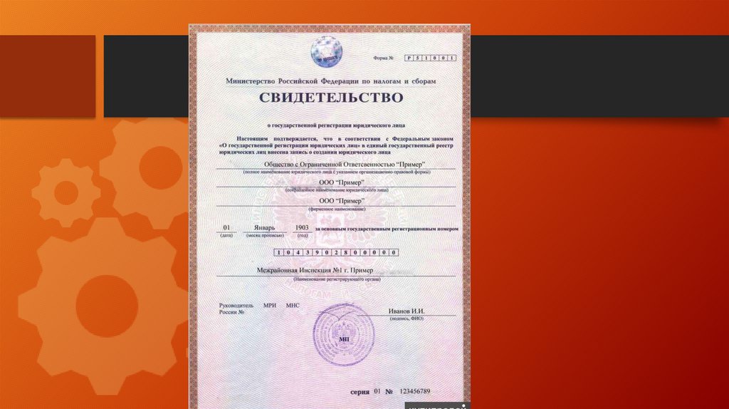 юридического лица в налоговом органе.
