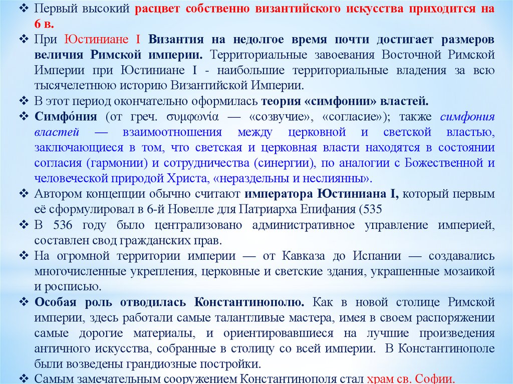 Первый высокий расцвет собственно византийского искусства приходится на6 в.