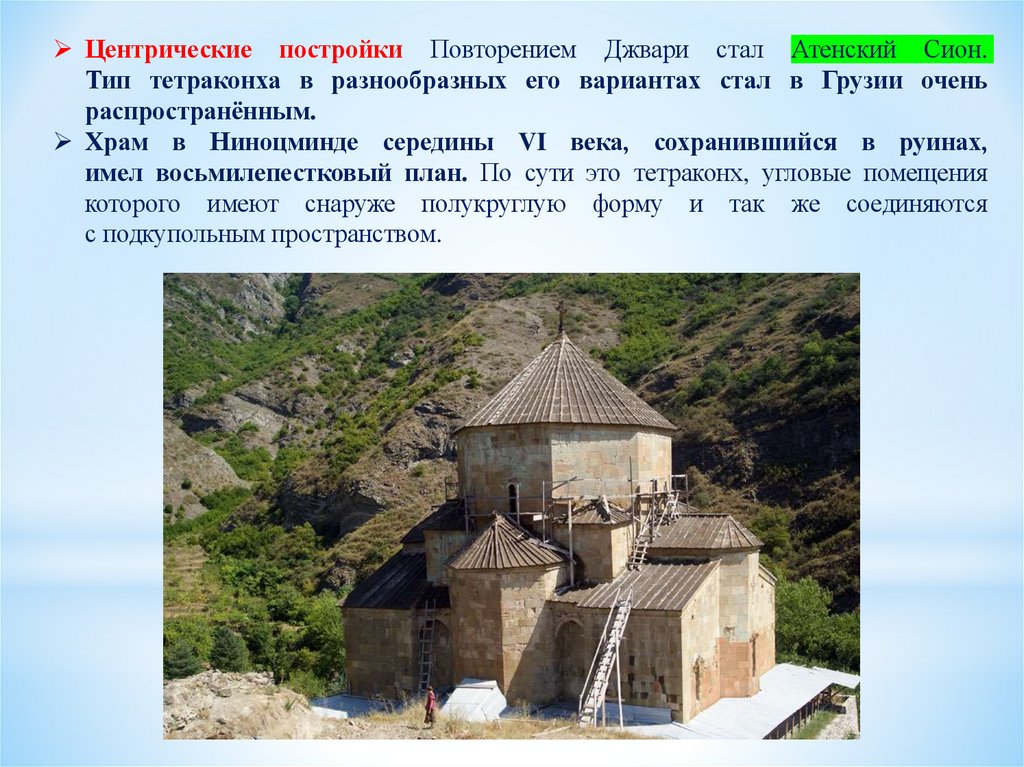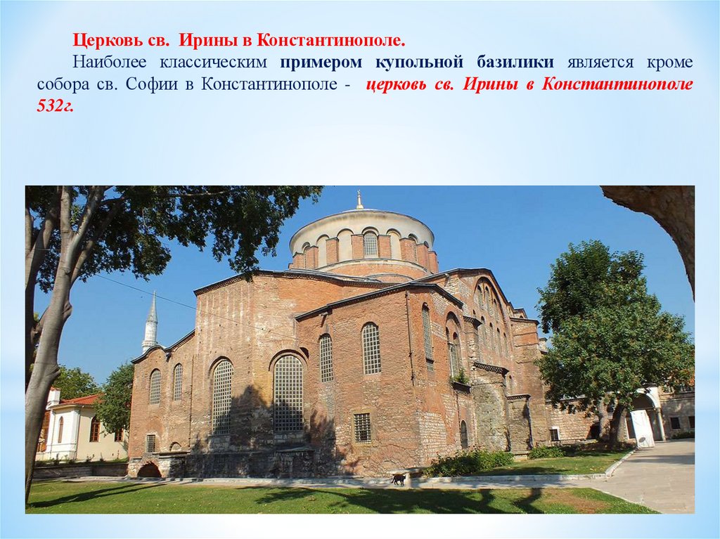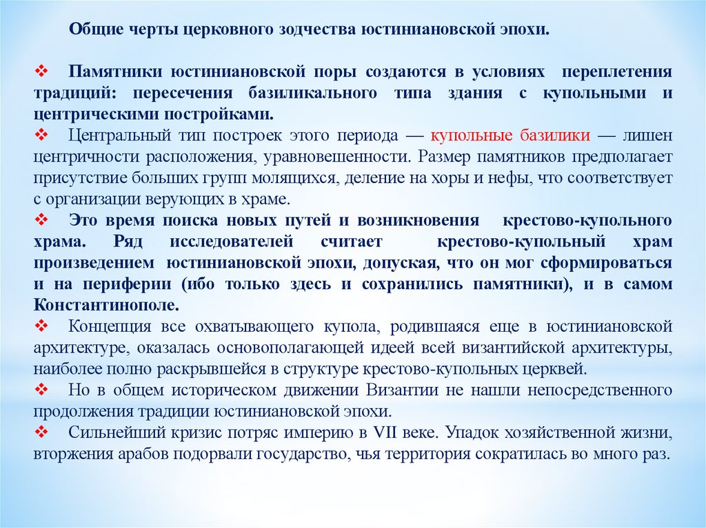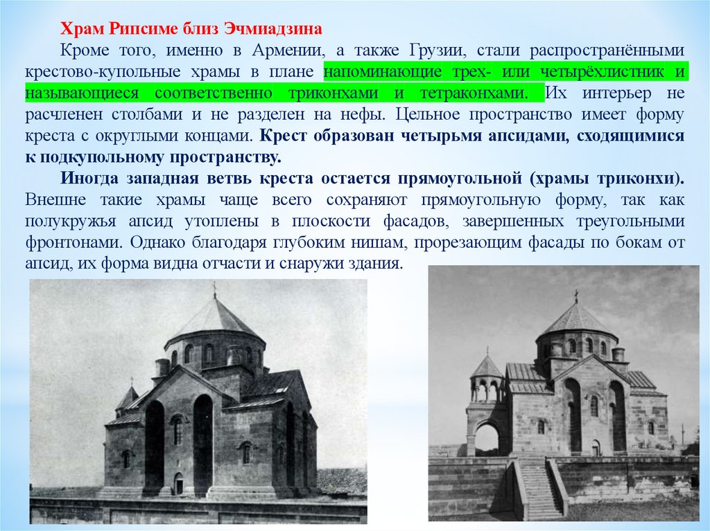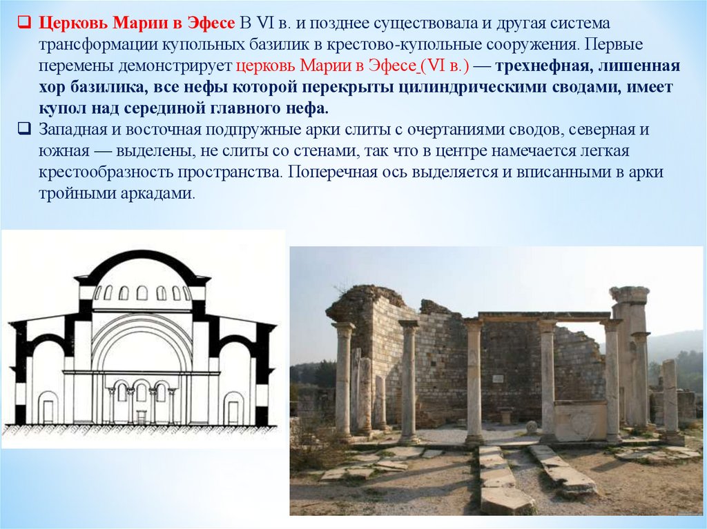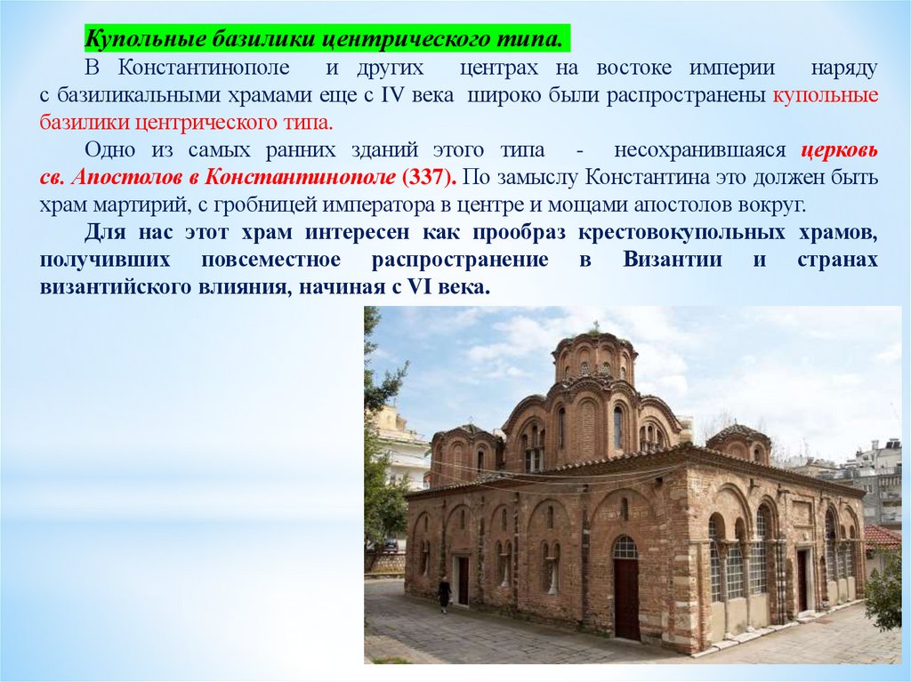 базилики, центрической церкви с куполом на восьми опорах и крестовокупольной системы.
