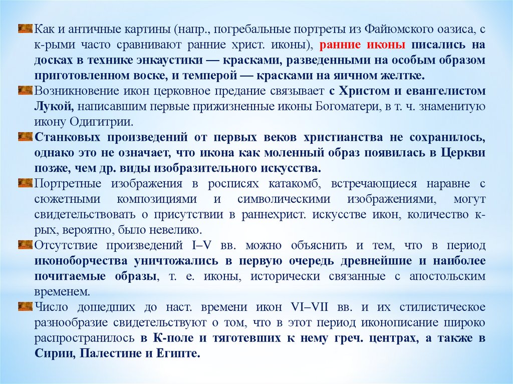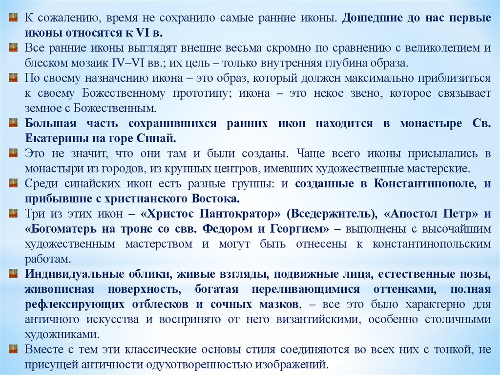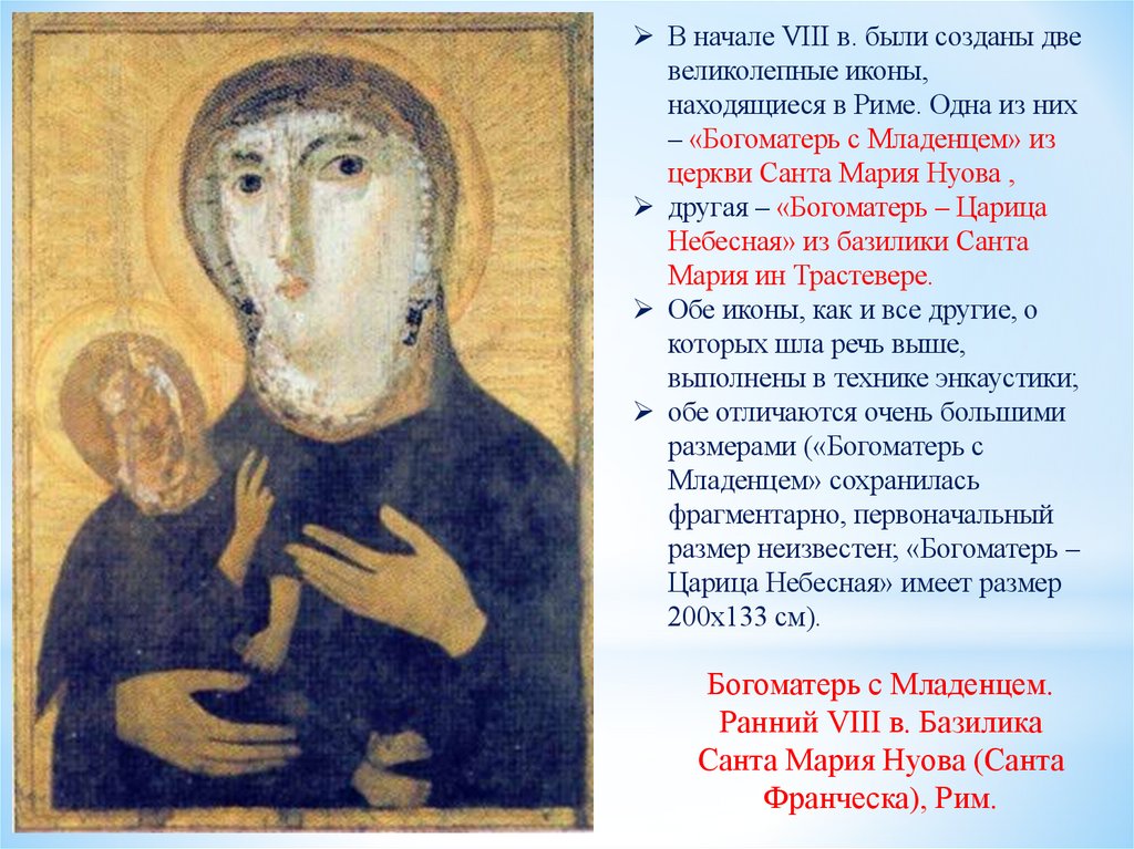 В начале VIII в. были созданы двевеликолепные иконы,