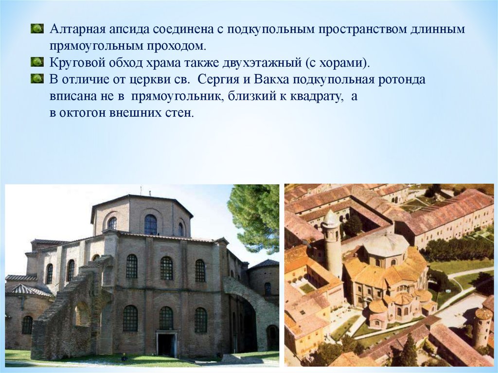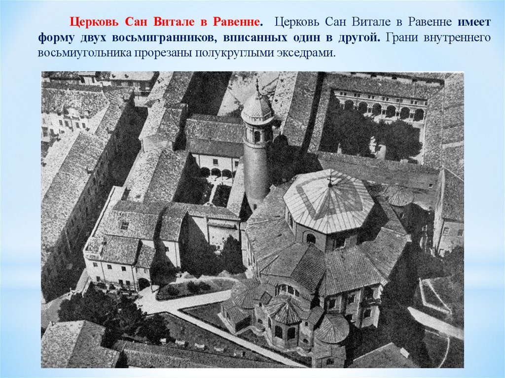 Церковь Сан Витале в Равенне. Церковь Сан Витале в Равенне имеетформу двух восьмигранников, вписанных один в другой. Грани внутреннего