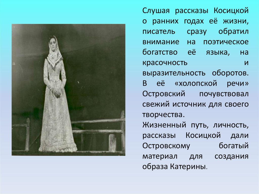 Слушая рассказы Косицкойо ранних годах её жизни,