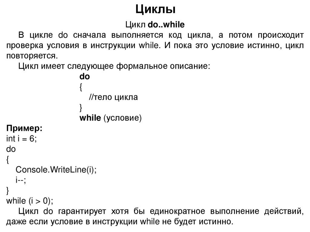 Цикл do гарантирует хотя бы единократное выполнение действий,