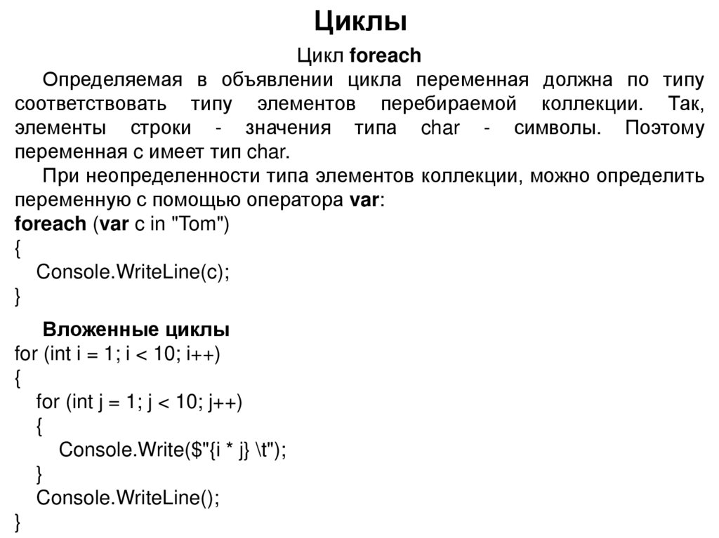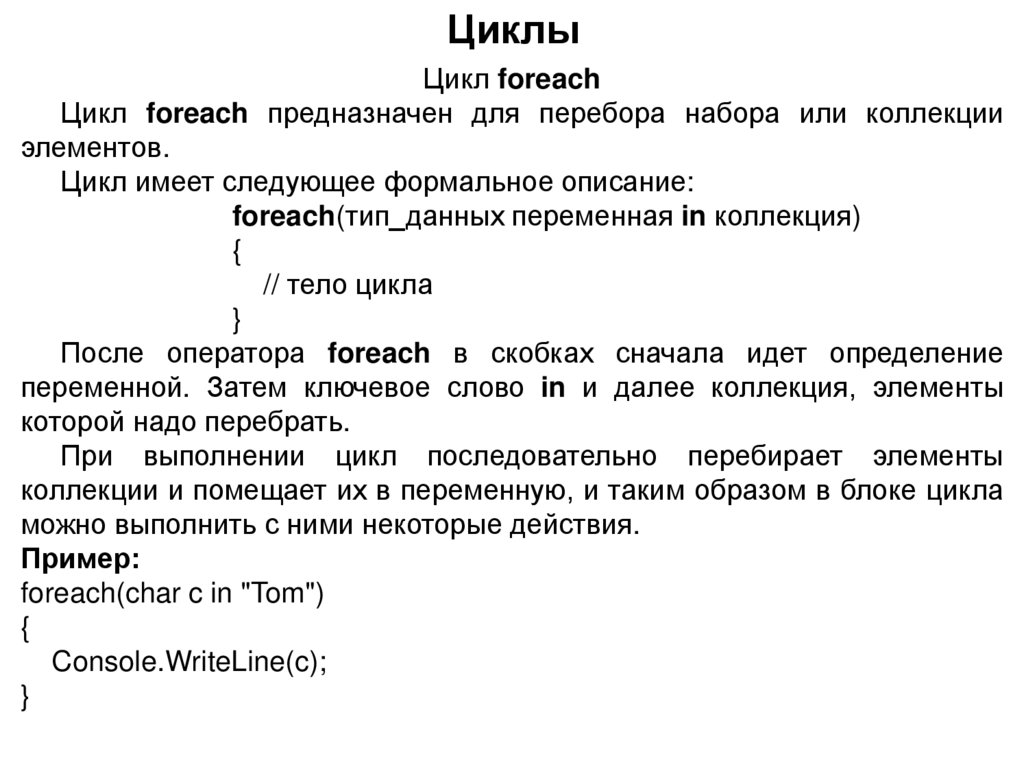 переменной. Затем ключевое слово in и далее коллекция, элементы