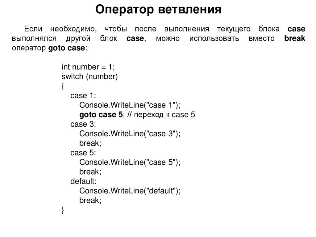 Оператор ветвленияЕсли необходимо, чтобы после выполнения текущего блока case
