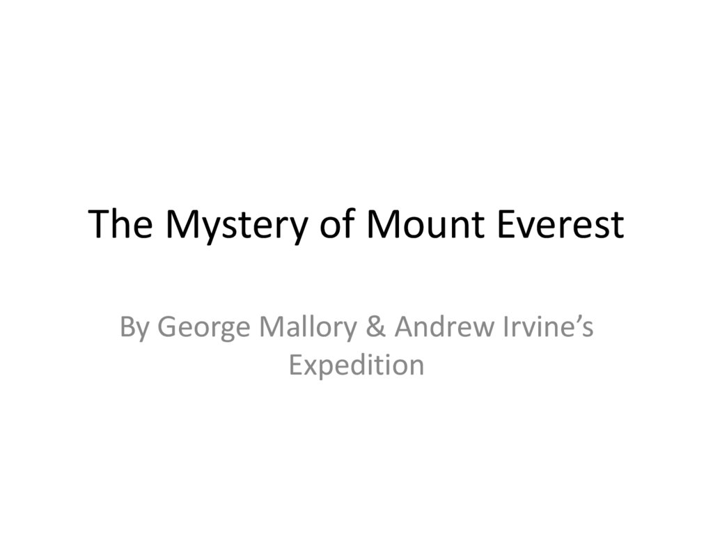 The Mystery of Mount EverestBy George Mallory & Andrew Irvine’s
