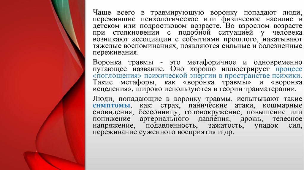 ВОРОНКА ТРАВМЫ /ВОРОНКА ИСЦЕЛЕНИЯ: