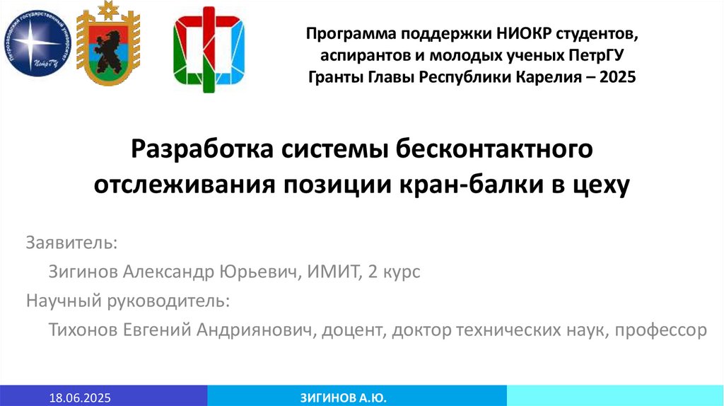 1. Разработка системы бесконтактного отслеживания позиции кран-балки в цеху