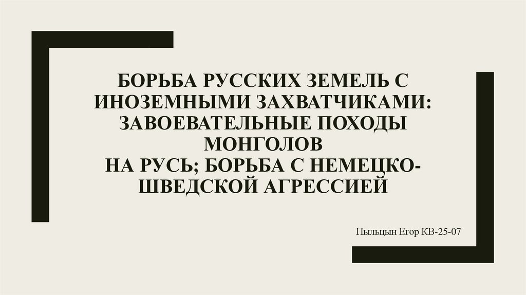 БОРЬБА РУССКИХ ЗЕМЕЛЬ СИНОЗЕМНЫМИ ЗАХВАТЧИКАМИ: