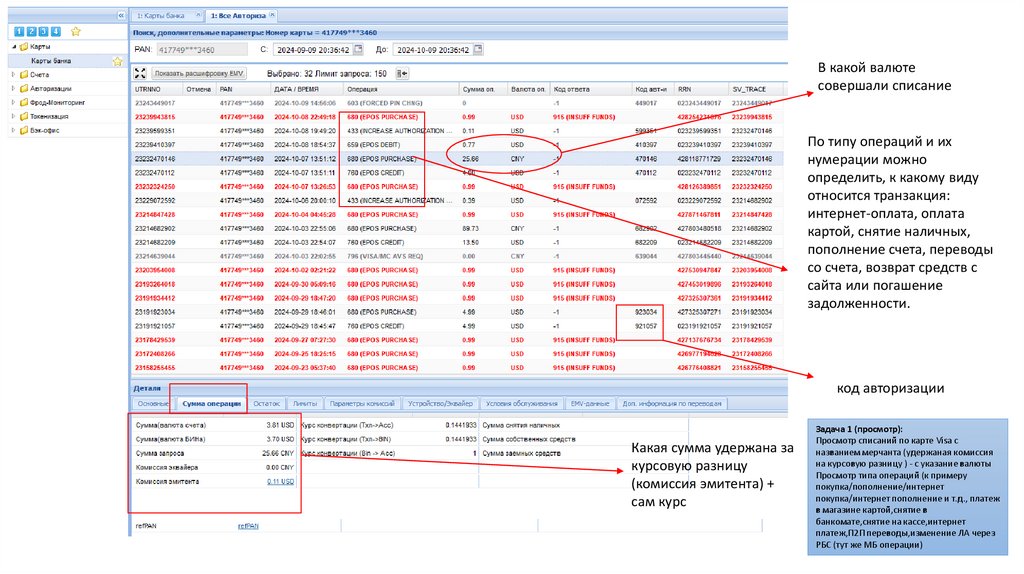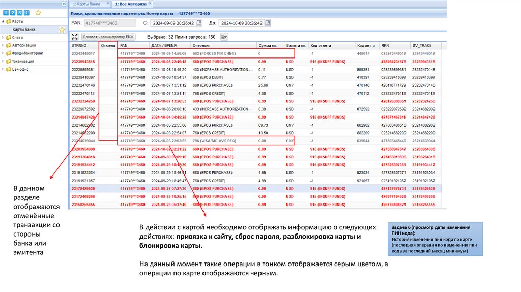 количество операций по карте с текущими