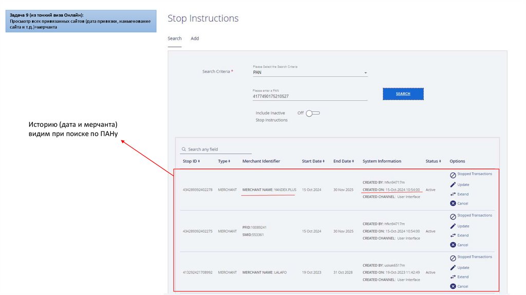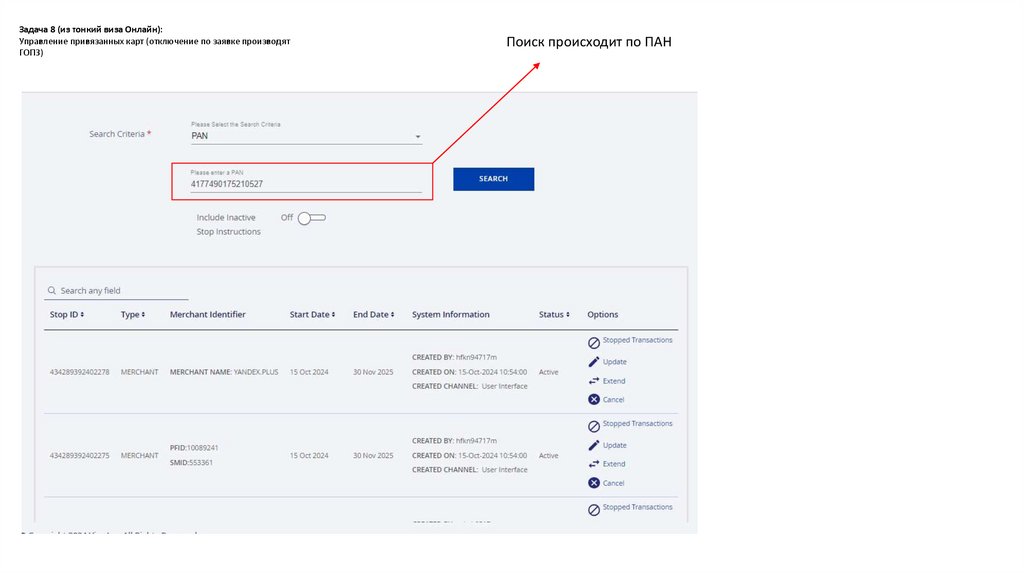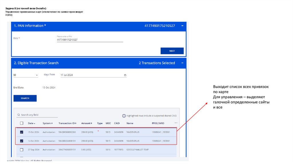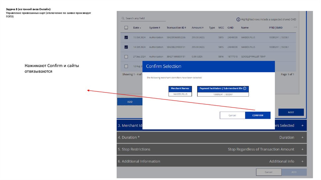 Задача 8 (из тонкий виза Онлайн):Управление привязанных карт (отключение по заявке производят