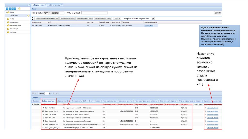 Задача 4 (просмотр и плюсвозможность изменения лимита):